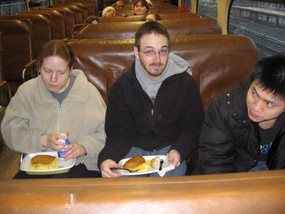 Marla, Joe, and Lei at breakfast on the train to the airport.