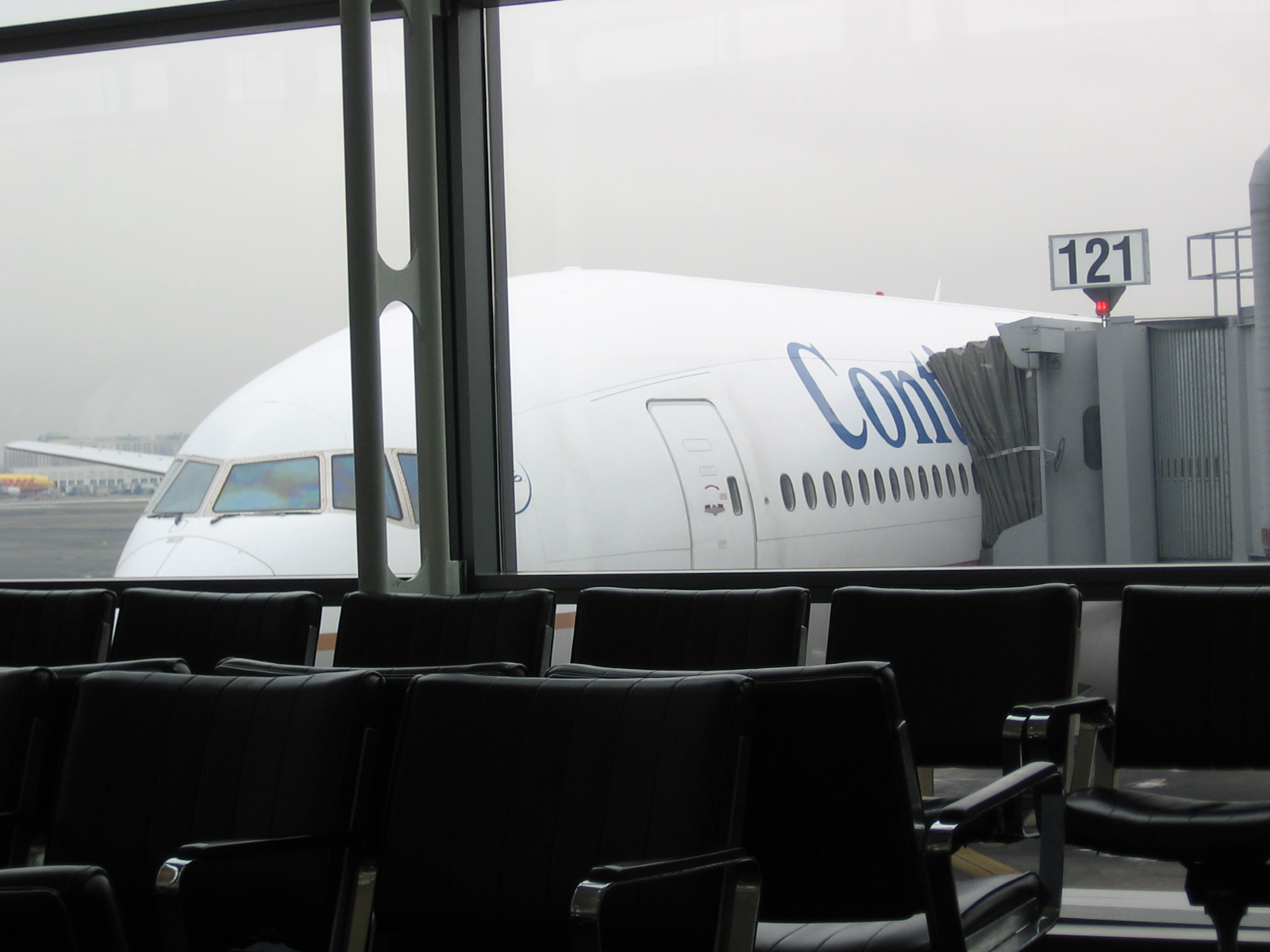 The Boeing 777-200ER that took us to Japan, sitting at the terminal in Newark.