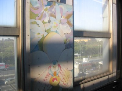 The train stations on this route had different pictures in them; this one had flowers, another had fish.